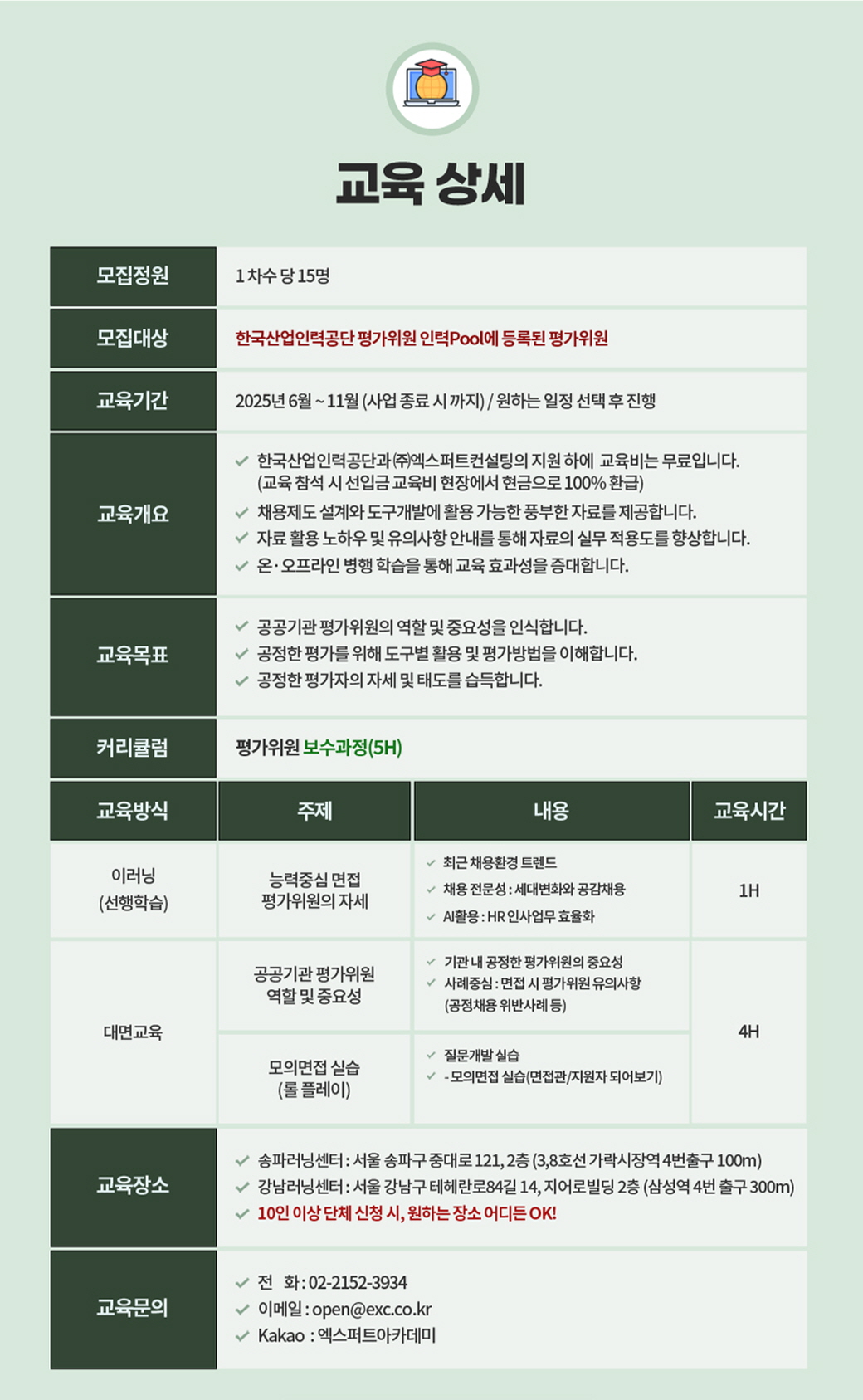 - 교육정원 정원 15명(선착순 마감)
